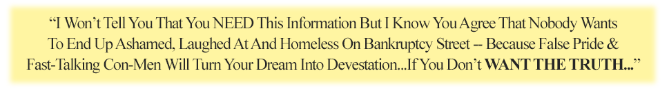 You missed the real crucial details you need to know right now before you take one more step toward the path to shame, embarrassment and complete financial ruin...BUT...